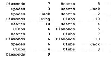 题目:编程模拟洗牌和发牌过程。一副扑克有52张牌,分为4种花色(Suit):黑桃