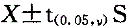 题目:对于一组正态分布的资料,样本含量为n,样本均数为X,标准差为S,该资料的总体均数可信区间为