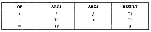对以下程序,给出四元式形式的中间代码,并进行可能的代码优化,给出优化后的代码程序。 (1)D=D+C*B A=D+C*B C=D+C*B (2)J=1 B=(5*J-2)+J (3)for I=1 to 10 do x=2*J+I